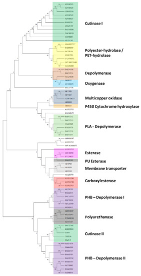 In this case, a clusterization tree was also generated, showing that all Rhodococcus putative polyester-degrading sequences were clusterized into a single tree against the reference gene inputs (Figure S7).