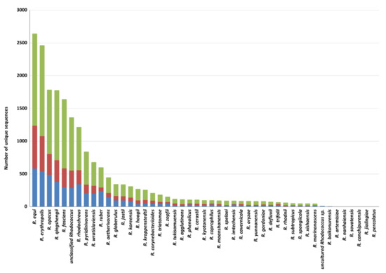 - Majidzadeh, M.; Fatahi-Bafghi, M. Current taxonomy of Rhodococcus species and their role in infections. Eur. J. Clin. Microbiol. Infect. Dis. 2018, 37, 2045–2062. [Google Scholar] [CrossRef]