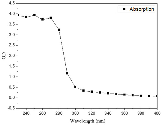 Full band scanning results demonstrated that a 1% FS solution had absorbed at 280 nm (Figure 5), which indicated that FS contained protein. By the determination of protein content, the existence of protein substance in FS was further verified, and the proportions of the protein content were determined to be 45.55% (w/w): the proportions of the polysaccharides content were determined to be 28.07% (w/w), the results indicated that the main components of FS were proteins and polysaccharides. Similar results have been found [44].