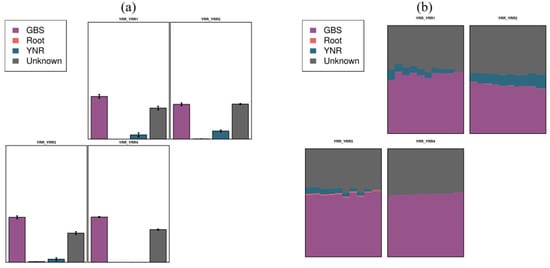 In the present study, the YRR group was identified as sink samples, and the GBS and YNR groups were identified as the source. Based on the Bayesian algorithm, the analysis of sources in the target samples was explored. The composition proportion of sink samples from each source sample was predicted according to the community structure distribution of source samples and sink samples (Figure 9). In the present study, the YRR group was identified as sink samples. Our results showed that the bacterial community of the YRR group was mainly from GBS groups (average 53.14%), a small part from YNR groups (average 6.56%), and the unknown source was an average of 40.3%.