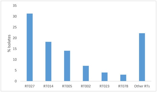 - Freeman, J.; Vernon, J.; Morris, K.; Nicholson, S.; Todhunter, S.; Longshaw, C.; Wilcox, M. Pan-European longitudinal surveillance of antibiotic resistance among prevalent Clostridium difficile ribotypes. Clin. Microbiol. Infect. 2015, 21, 248.e9–248.e16. [Google Scholar] [CrossRef]