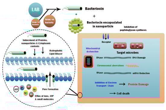 Shafique B, Ranjha MMAN, Murtaza MA, Walayat N, Nawaz A, Khalid W, Mahmood S, Nadeem M, Manzoor MF, Ameer K, et al. Recent Trends and Applications of Nanoencapsulated Bacteriocins against Microbes in Food Quality and Safety. Microorganisms. 2023; 11(1):85. https://doi.org/10.3390/microorganisms11010085