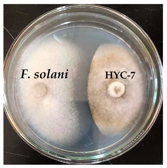 2.2. Determination of the Antagonistic Effect of HYC-7 Strain on F. solani