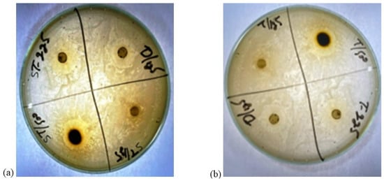 Antibacterial activity of Acacia nilotica flower’s extract at 500 and 125 mg/mL of plant’s concentration and Amoxicillin concentration 125 mg. (a) Zone of inhibition (mm) of Acacia nilotica for S. aureus; (b) zone of inhibition (mm) of Acacia nilotica for E. coli.