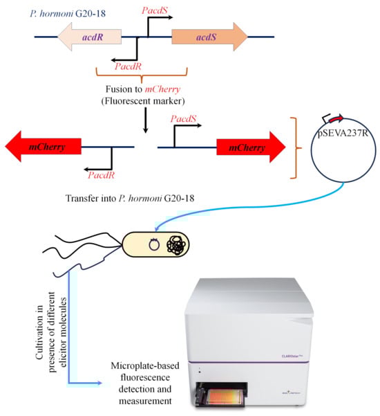 Schematic representation of the workflow adapted to generate an mCherry-tagged acdS and acdR promoter fusion in P. hormoni G20-18T.