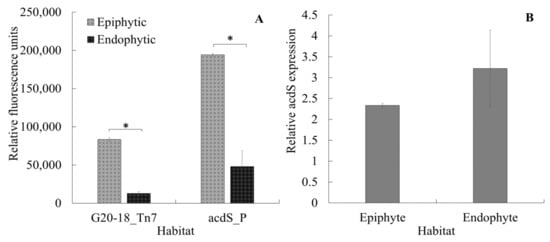 3.5. acdS Promoter Activity in Epiphytic vs. Endophytic Cells