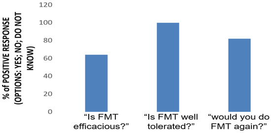 FMT perception. A telephone survey was conducted 24 weeks after the procedure. Three questions were asked to patients, requiring a yes or no answer.