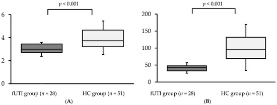 | fUTI Group (n = 28) | HC Group (n = 51) | p Value | |