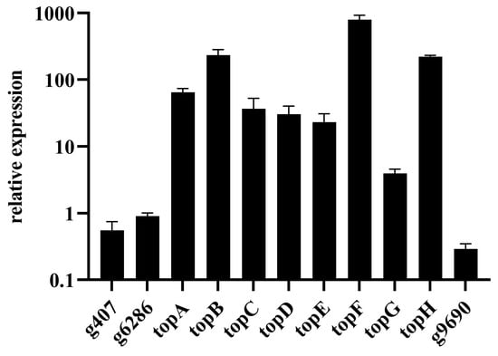 Building upon these outcomes, we can postulate a regulatory mechanism for TopC. In this proposed mechanism, TopC directly engages with the upstream promoter regions of all genes encompassed within the top gene cluster, thereby augmenting the expression levels of the relevant genes.