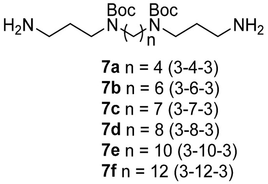 Boc-protected polyamines 7a–f.