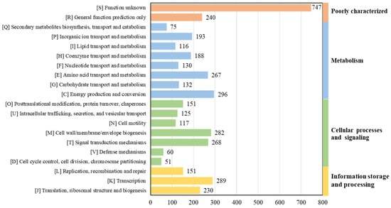 - Cantalapiedra, C.P.; Hernández-Plaza, A.; Letunic, I.; Bork, P.; Huerta-Cepas, J. eggNOG-mapper v2: Functional annotation, orthology assignments, and domain prediction at the metagenomic scale. Mol. Biol. Evol. 2021, 38, 5825–5829. [Google Scholar] [CrossRef]