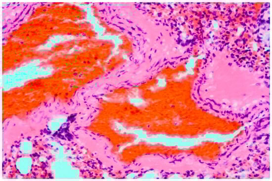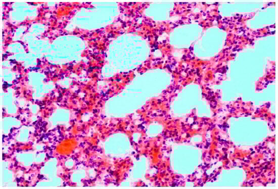 Furthermore, the present study provides more robust insight into the pathology of the lung tissue associated with LLOV infection in Schreiber’s bats. Lesions observed here further corroborate previous, very limited observations in bat die-off events from Spain [,]. The congestion and hemorrhage in the lung tissue, the associated edema and the interstitial pneumonia point to respiratory compromise as the most likely mechanism and mode of death. These lesions are commonly associated with viral infections, in particular Filoviruses (Ebolavirus and Marburgvirus) [,]. However, to demonstrate clear involvement of the LLOV in the development of the described lesions, methods such as immunohistochemistry and/or in situ hybridization should be employed.
