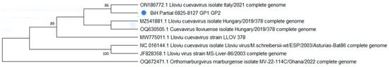 In this study, we report that the LLOV has been connected to yet another mass mortality event in bats, spreading further along the area of distribution of Schreiber’s bats in Europe. In northeastern Hungary, several of mass mortality events in Schreiber’s bat colonies were recorded between 2013 and 2020 [,], while similar events were also recorded in northern Italy between 2018 and 2020 []. This mass mortality event in the largest colony of Schreiber’s bats in eastern BiH marks the first such event recorded in the country to date.