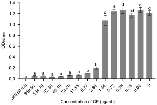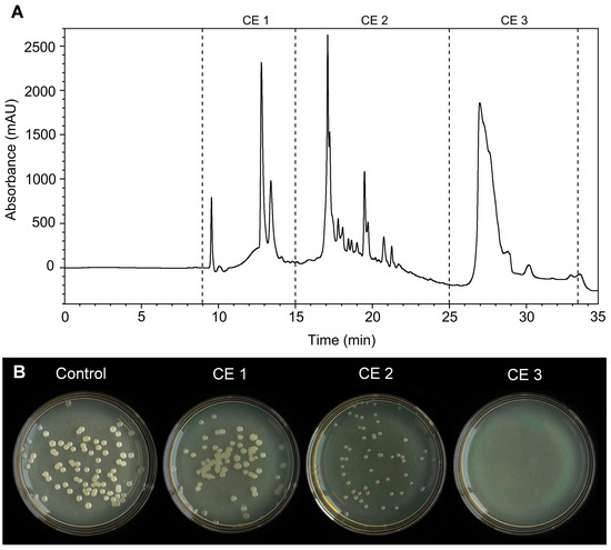 3.7. Analysis of the Antibacterial Activity of the Purified CE