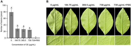 2.7. Biocontrol Assays of CE under Greenhouse Conditions