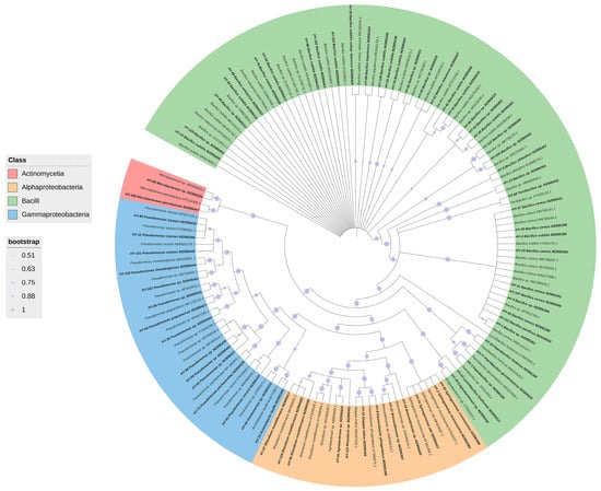 - Letunic, I.; Bork, P. Interactive Tree of Life (ITOL) v5: An Online Tool for Phylogenetic Tree Display and Annotation. Nucleic Acids Res. 2021, 49, W293–W296. [Google Scholar] [CrossRef] [PubMed]