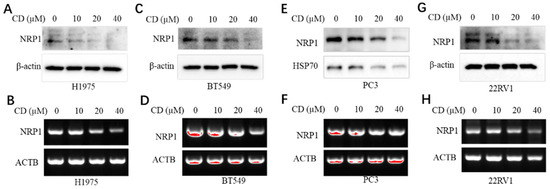 3.1. Cordycepin (CD) Inhibits NRP1 Expression in Various Cells