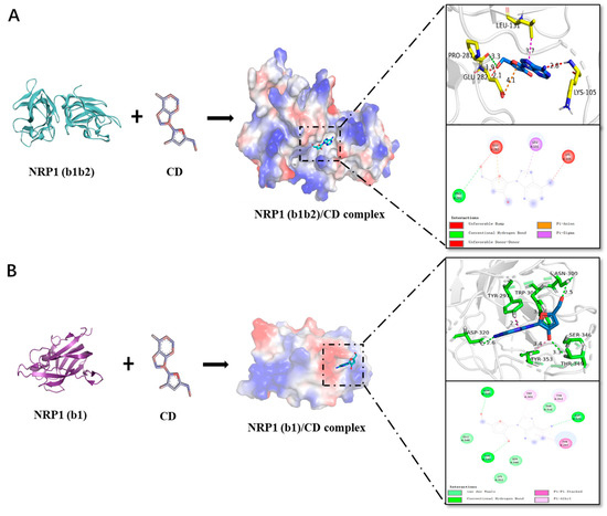 | CD-NRP1(b1b2) | −6.3 # | Lys105, Leu131, Pro281 *, Glu282 |