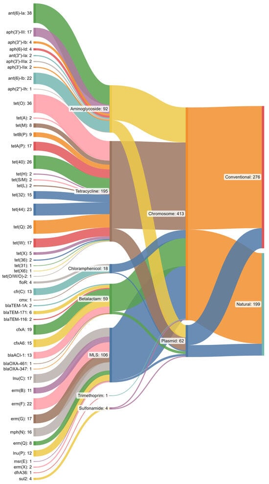 - Pal, C.; Bengtsson-Palme, J.; Kristiansson, E.; Larsson, D.G.J. The structure and diversity of human, animal and environmental resistomes. Microbiome 2016, 4, 54. [Google Scholar] [CrossRef]