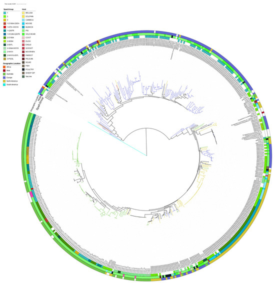 - Ribeiro-Gonçalves, B.; Francisco Alexandre, P.; Vaz, C.; Ramirez, M.; Carriço, J.A. PHYLOViZ Online: Web-based tool for visualization, phylogenetic inference, analysis and sharing of minimum spanning trees. Nucleic Acids Res. 2016, 44, W246–W251. [Google Scholar] [CrossRef]