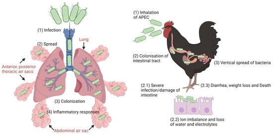- Kathayat, D.; Lokesh, D.; Ranjit, S.; Rajashekara, G. Avian pathogenic Escherichia coli (APEC): An overview of virulence and pathogenesis factors, zoonotic potential, and control strategies. Pathogens 2021, 10, 467. [Google Scholar] [CrossRef]
