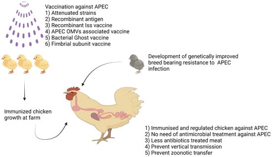 Thus, to counteract the above-mentioned antibacterial resistance of highly virulent strains, global efforts are needed to ensure the discovery of alternative solutions. Currently, antimicrobial-resistant pathogens are causing 700,000 deaths per year, and 10 million deaths per year are expected by 2050, a number even higher than the 8.2 million caused by cancer today [67,68]. The development of novel therapeutic approaches will continue to be essential. In addition, alternative sustainable preventive strategies such as vaccination can help in limiting the increase of antibiotic-resistant E. coli. In the following sections of this review, we will summarize the vaccination strategies to prevent diseases caused by different pathotypes of E. coli.
