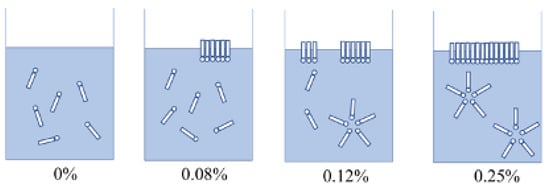 Surfactants have special molecular structures (amphiphilic structures) consisting of hydrophobic and hydrophilic groups [39,40]. They can be divided into cationic, anionic, nonionic, and amphoteric types by their hydrophilic groups (Table 2 and Figure 2) [41]: