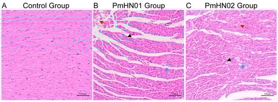 3.1. Pm HN01 and Pm HN02 Cause Different Pathological Changes in the Heart