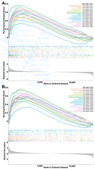 - Subramanian, A.; Tamayo, P.; Mootha, V.K.; Mukherjee, S.; Ebert, B.L.; Gillette, M.A.; Paulovich, A.; Pomeroy, S.L.; Golub, T.R.; Lander, E.S.; et al. Gene set enrichment analysis: A knowledge-based approach for interpreting genome-wide expression profiles. Proc. Natl. Acad. Sci. USA 2005, 102, 15545–15550. [Google Scholar] [CrossRef] [PubMed]