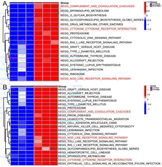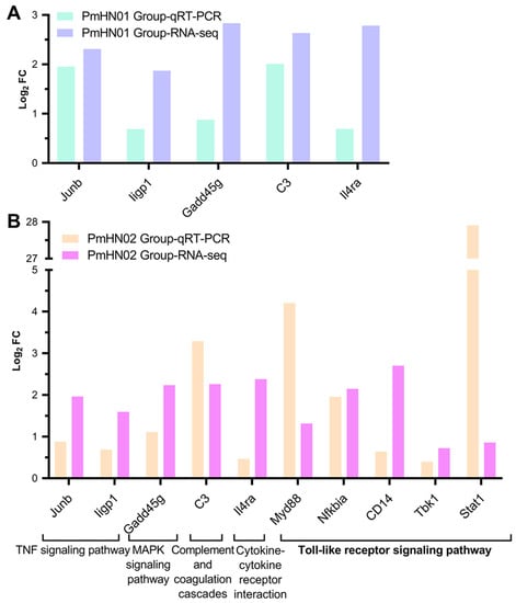3.3. Common DEGs Regulated by Pm HN01 and Pm HN02 Are Mainly Related to Innate Immunity