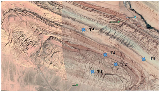 Location of sampling points in Flaming Mountain area (soil samples marked in blue).