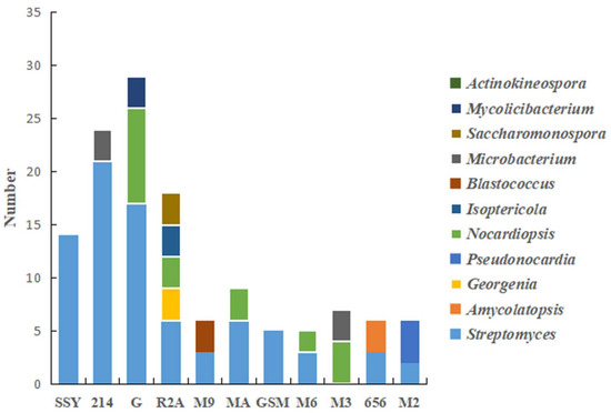 The following supporting information can be downloaded at: https://www.mdpi.com/article/10.3390/microorganisms11020489/s1, Table S1: A total of 11 media were prepared to isolate actinobacteria.