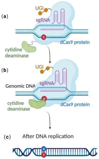 - Komor, A.C.; Kim, Y.B.; Packer, M.S.; Zuris, J.A.; Liu, D.R. Programmable editing of a target base in genomic DNA without double-stranded DNA cleavage. Nature 2016, 533, 420–424. [Google Scholar] [CrossRef] [PubMed]