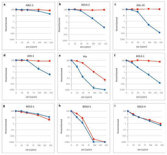 - Crowley, D.J.; Boubriak, I.; Berquist, B.R.; Clark, M.; Richard, E.; Sullivan, L.; DasSarma, S.; McCready, S. The uvrA, uvrB, and uvrC genes are required for repair of ultraviolet light induced DNA photoproducts in Halobacterium sp. NRC-1. Saline Syst. 2006, 2, 11. [Google Scholar] [CrossRef]