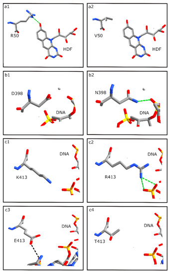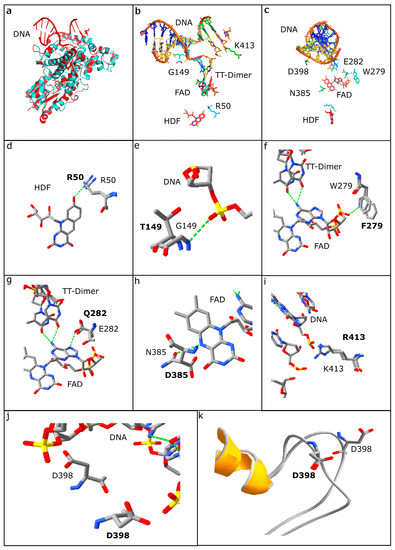 - Rousseau, B.J.G.; Shafei, S.; Migliore, A.; Stanley, R.J.; Beratan, D.N. Determinants of Photolyase’s DNA Repair Mechanism in Mesophiles and Extremophiles. J. Am. Chem. Soc. 2018, 140, 2853–2861. [Google Scholar] [CrossRef]