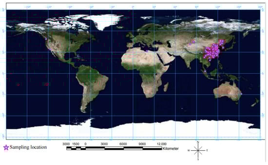 A total of 95 papers were identified from WOS, Google Scholar and CNKI database that met the criteria. From those that represented field studies, we collated the location of the sampling sites and plotted their latitude and longitude data on a map (Figure 1).