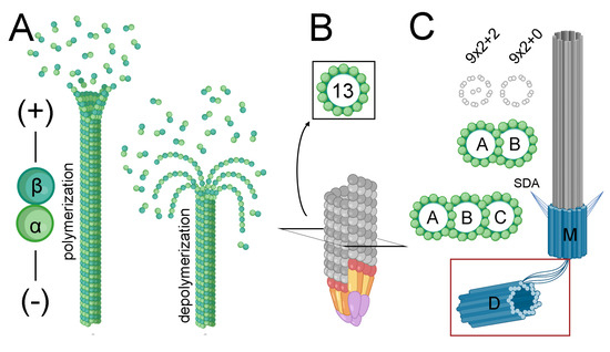 - Marshall, W.F.; Rosenbaum, J.L. Tubulin superfamily: Giving birth to triplets. Curr. Biol. 2003, 13, R55–R56. [Google Scholar] [CrossRef]