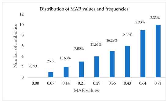 Figure 4. Distribution of MAR values and frequencies of Listeria isolates in the study.