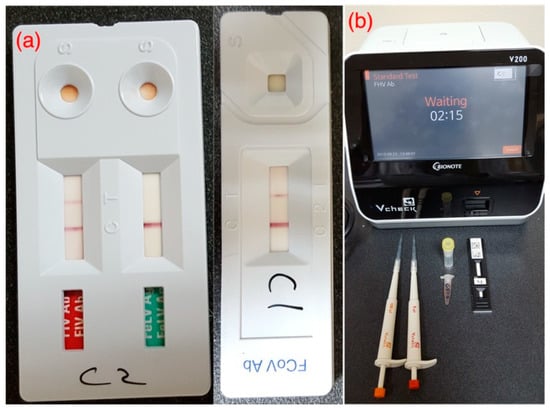 (a) Qualitative snap tests and (b) Vcheck-V200 machine for semi-quantitative IgG immunoassays.