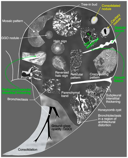 - Walker, C.M.; Abbott, G.F.; Greene, R.E.; Shepard, J.-A.O.; Vummidi, D.; Digumarthy, S.R. Imaging Pulmonary Infection: Classic Signs and Patterns. Am. J. Roentgenol. 2014, 202, 479–492. [Google Scholar] [CrossRef]