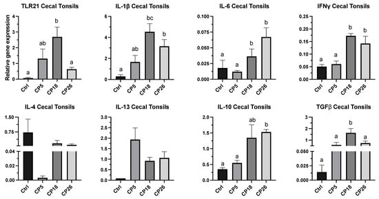 - Lu, Y.; Sarson, A.J.; Gong, J.; Zhou, H.; Zhu, W.; Kang, Z.; Yu, H.; Sharif, S.; Han, Y. Expression profiles of genes in Toll-like receptor-mediated signaling of broilers infected with Clostridium perfringens. Clin. Vaccine Immunol. 2009, 16, 1639–1647. [Google Scholar] [CrossRef]