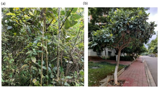 Habitats for representative L. delavayi individuals grown in the wild (a) and on campus (b) in Yunnan Province. The GPS coordinates are given in Table S1.