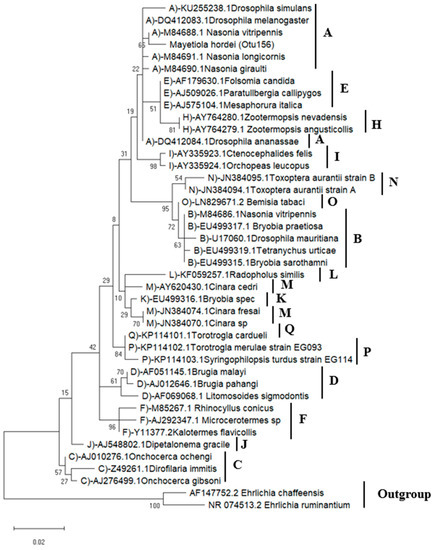 - Baldo, L.; Werren, J.H. Revisiting Wolbachia Supergroup Typing Based on WSP: Spurious Lineages and Discordance with MLST. Curr. Microbiol. 2007, 55, 81–87. [Google Scholar] [CrossRef] [PubMed]