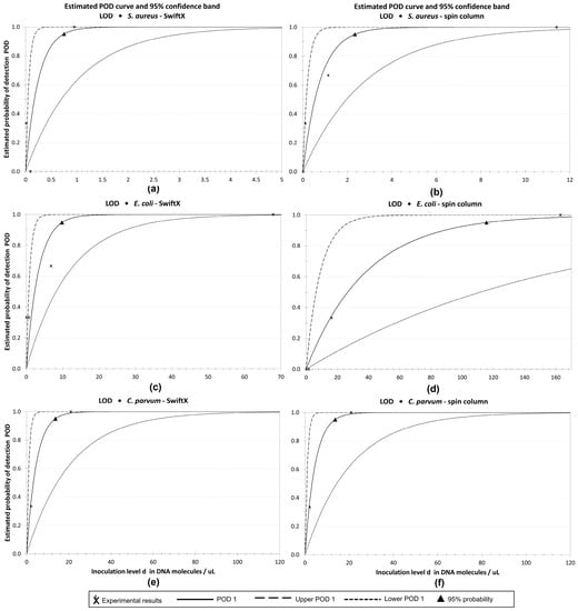- Wilrich, C.; Wilrich, P.T. Estimation of the POD function and the LOD of a qualitative microbiological measurement method. J. AOAC Int. 2009, 92, 1763–1772. [Google Scholar] [CrossRef]