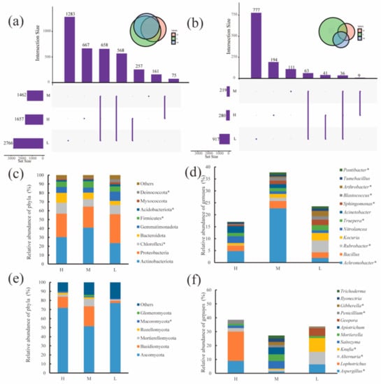 - Lauber, C.L.; Strickland, M.S.; Bradford, M.A.; Fierer, N. The influence of soil properties on the structure of bacterial and fungal communities across land-use types. Soil Biol. Biochem. 2008, 40, 2407–2415. [Google Scholar] [CrossRef]