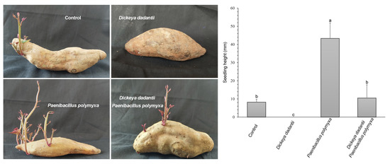 3.3. P. polymyxa ShX301 Protected Seed Tubers and Promoted Seedling Growth