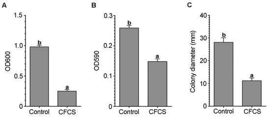 3.4. CFCS of P. polymyxa ShX301 Inhibited D. dadantii Growth, Biofilm Formation, and Swimming Motility