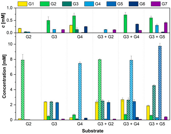 3.3. Combination of α-1,4-Glucans Results in Different Elongated Glucan Chains