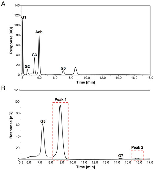 3.4. Detection of New Peaks in Assays with Acarbose and α-1,4-Glucans