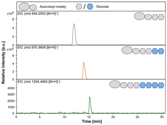 | Acarviosyl Metabolites | Abbreviation | Sum Formula | [M + H]+ m/z |